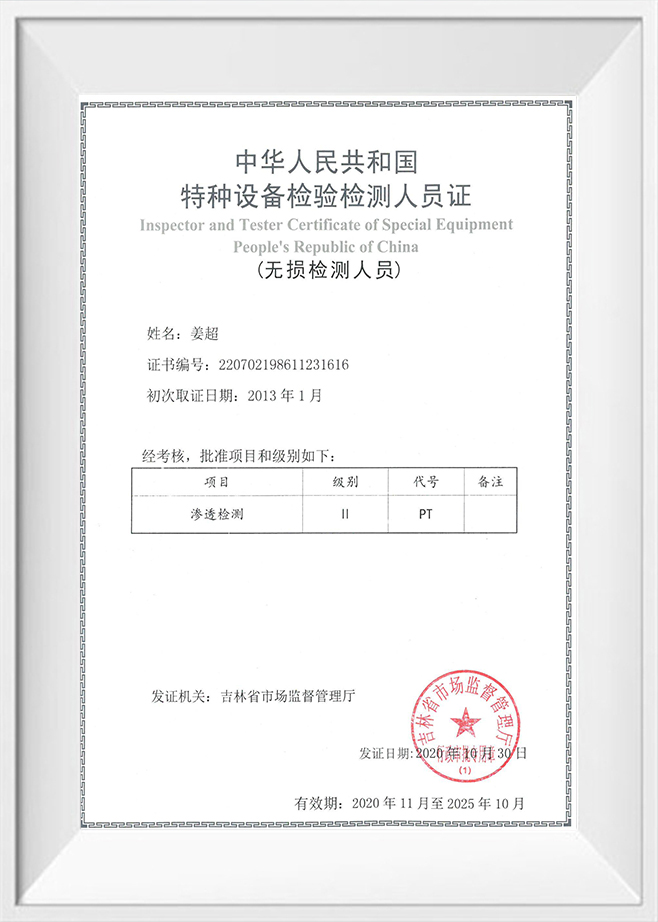 Inspektor a tester osvědčení o zvláštním vybavení Čínská republika